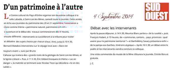 10h30 - Bruno Cahuzac : Grands traits de la géologie de Saint-Lon-les-Mines, et le lignite crétacé