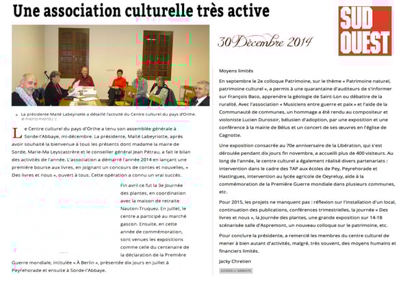 Le centre culturel du pays d’Orthe va installer le 2 février prochain sa première manifestation dédiée aux auteurs locaux (qui seront présents et dédicaceront leurs