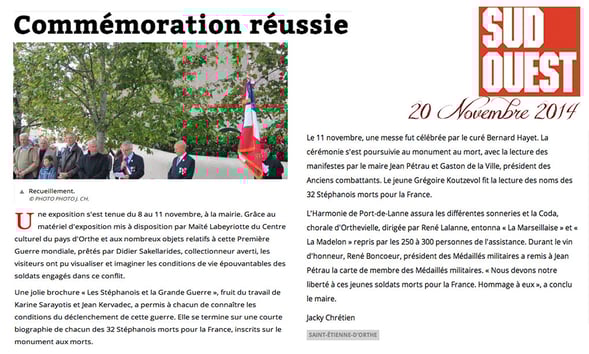 Centenaire pour lequel nous avons obtenu un label de la part de la Mission du Centenaire.