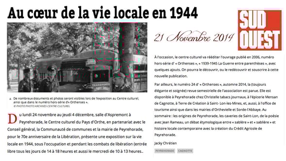 Deux jours plus tard, marché aux cochons à Peyrehorade pour le "marcat gascoun" et nous terminons la semaine par l’ouverture de notre expo "À Berlin, l’onde de choc de 1914" dans les salles des gardes du château d’Orthe (entrée côté ancien port pour les férus d’histoire peyrehoradaise, côté parking de la salle d’Aspremont pour les autres). Nous y serons tous les après-midis jusqu’au 30 juillet et nous déménagerons à Sorde du 1er au 20 août, toujours les après-midis (de 15 à 18h).