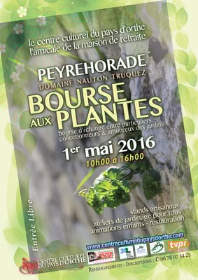 Comme chaque année, la Bourse aux Plantes organisée au Domaine Nauton Truquez à Peyrehorade avec l'Amicale de la Maison de Retraite, est l’occasion de vendre, acheter, échanger tous les éléments qui touchent au jardin, des graines et plantes jusqu’aux livres et revues ou outils, neufs ou anciens.