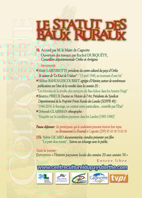 Cette année, c'est à Cagnotte qu'aura lieu cette rencontre où officieront les intervenantes suivantes sur des thème locaux bien particuliers :