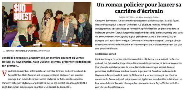 L'auteur qui avait confié aux Éditions Orthenses le soin de langer ce bébé, avait organisé avec le Centre culturel du pays d'Orthe, une très conviviale séance de dédicaces