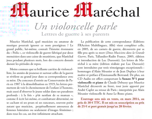 mère. La chance lui sourira fin 1915. Lors d’un déplacement de la Division de Champagne en Artois, il s’était fait remarquer… en dénichant un violon chez un marchand ambulant. Puis le colonel