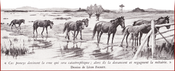 Il n’accepte de foin que celui qu’on veut bien lui apporter en barque de la métairie où il est inscrit sur les rôles animaux, lors des amples inondations qui l’ont isolé sur une bosse de la prairie.