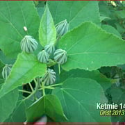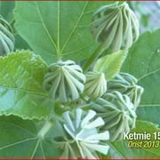 Les magnifiques fleurs constituées de cinq pétales, s'épanouissent de juillet à octobre sur une plante majestueuse pouvant atteindre trois mètres de haut avec de grandes feuilles ovales et lancéolées et sont ici connues sous le nom de ketmie.