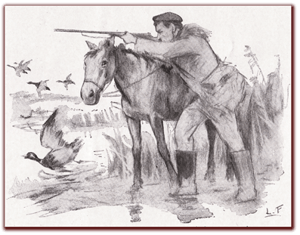 […] Cependant l’animal se laisse fort bien dresser par le chasseur d’oiseaux aquatiques : poules d’eau, sarcelles, vanneaux, outardes et canards sauvages, voire héron hurluberlu ! Il laisse l’homme, masqué par lui, approcher le gibier d’eau ; il va, docile, à sa pression. Les oiseaux accoutumés à ce quadrupède, hôte invétéré de ces solitudes, se méfient de telle ruse moins encore que du cheval de bois des Grecs, les malheureux habitants d’Illion !… Le poney s’adapte si bien aux besoins de l’homme qu’il fait le service du transporteur de charbon dans les galeries de mine où celui du maraîcher porteur de légumes à la ville […]