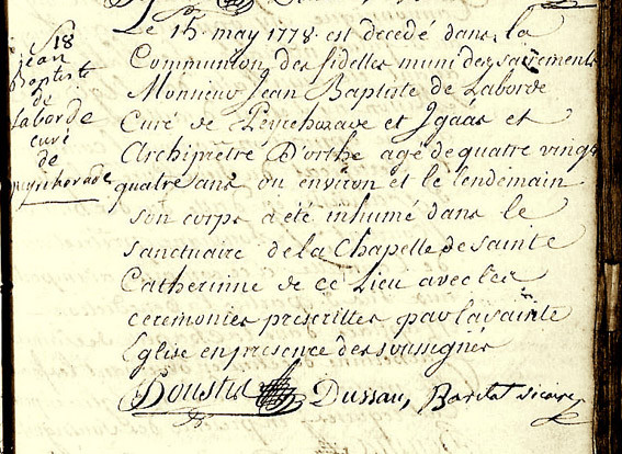“Nous, curés de l’archiprêtré d’Orthe assistames tous à l’enterrement de Monsieur le vicomte d’Orthe le 25 novembre 1772.