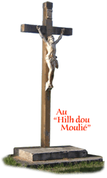 La croix du Fils du Moulié offre une longue avenue d’ormes auxquels pendent des roses, des boules de neige, des lilas. Elle étend ses longs bras chargés de roses, pourpres comme le sang du Sauveur.