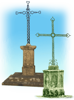 La croix de Pardies est vêtue de mousse et chargée de roses. Des guirlandes courent autour d’un véritable parterre. Quatre colombes sont perchées sur les bras de la croix et sur les colonnettes. Elles disent la paix et l’espérance.