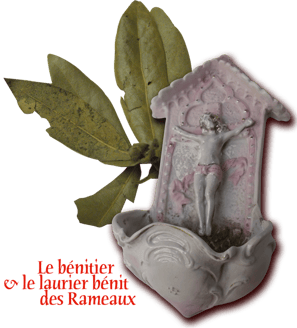 De la même façon, un brin du laurier béni lors de la fête des Rameaux ( beaucoup plus commun ici que le buis traditionnellement affecté à cette mission ) orne chaque pièce de la maison - et même l'étable ! - apportant sa protection.