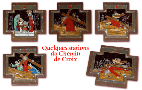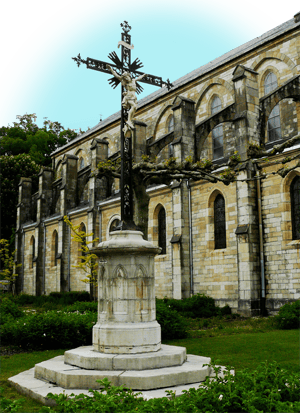 La croix de Lembarry est gracieuse : quel luxe de marguerites blanches ! Les marguerites sourient aux roses ; et la vierge en extase sourit au pied de la croix.