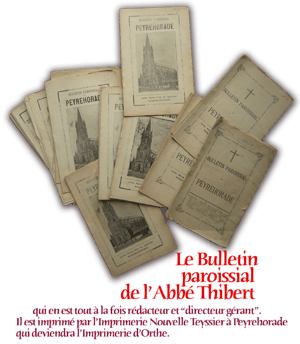 De 1893 jusqu’en 1914, le Curé doyen Léon THIBERT officie à Peyrehorade. Son bulletin contribuera à pérenniser les chroniques locales. Il a pour vicaires Marcien DABADIE (1896), Jean Paul BIZEUL (1901)