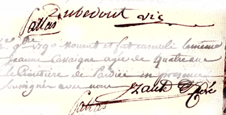 son enterrement est fixé à mercredy prochain, vingt cinq du courant à neuf heures du matin. Vous voudrez bien, Monsieur, avoir la bonté d’y assister, précédé du marguillier et croix haute de