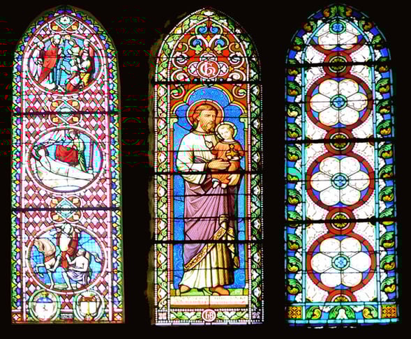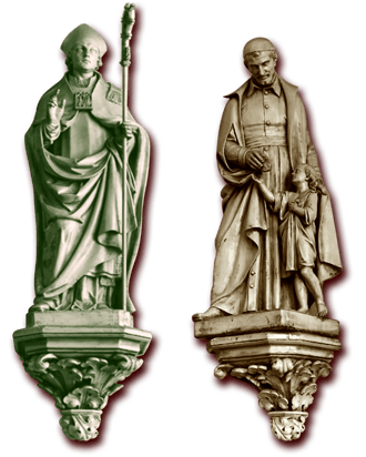 Elles représentent respectivement, Saint Martin, sous le patronnage duquel l'église est placée, evêque, Saint Vincent de Paul donnant