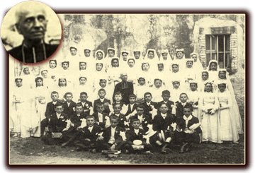Sur la photo ci-contre, l'Abbé Thibert avec une belle envolée de communiant(e)s de Peyrehorade.