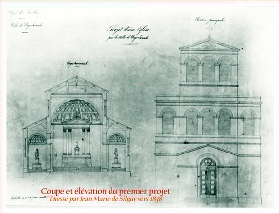 de la future église. Jean Marie de SILGUY, ingénieur des Ponts et Chaussées, après avoir dressé les plans du pont, établit un premier projet de style néo classique qui n’est pas