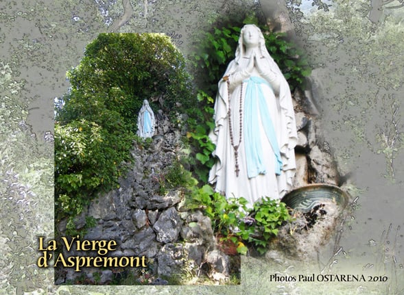 Au sommet de la colline d'Aspremont, directement au débouché supérieur du sentier en lacets qui démarre derrière l'église, un oratoire dédié à la Vierge des apparitions de Lourdes en 1858, est érigé en 1877.