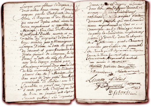 Au milieu du XVIIIe siècle, l'instituteur faisant office de scripteur des registres de l'état-civil, conjointement avec le vicaire, se laisse aller à quelques "fioritures" qui ne manquent pas de charme…