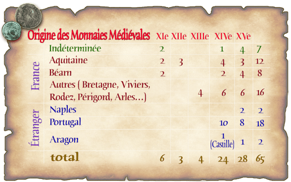 Les monnaies médiévales trouvées à Pardies, soit en place, soit hors contexte, nous donnent des précisions sur l’état des relations commerciales entre le pays
