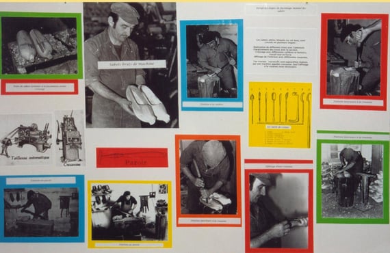 En 2000, le Centre Culturel du Pays d'Orthe a travaillé et organisé une magnifique exposition sur les vieux métiers de notre région. Il ne reste de cet important travail que les panneaux d'exposition et quelques photos que vous pourrez retrouver ci-dessous, pour la partie "sabotier". Par manque de temps et aussi de moyens, la publication d'aucune plaquette ne vint ponctuer et garder trace de cette réalisation.