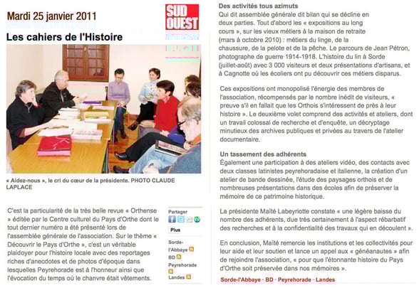 l’histoire de leurs grands-parents ! Ainsi, j’ai eu un moment l’impression de procéder à un témoignage de dinosaure face à des jeunes qui découvraient l’histoire du pays d’Orthe dans cette