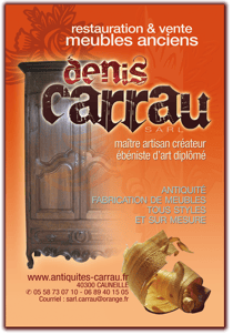 Le Maître artisan, restaurateur et créateur de meubles, Denis CARRAU, de Cauneille nous a très aimablement permis de mettre en valeur différents aspects de cette exposition par des apports non négligeables de meubles, bibelots et antiquités qui constituent une faire-valoir pour tous les objets de notre recherche et des explications présentées.