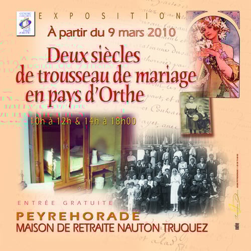 La Maison de Retraite Nauton Truquez, 283 Rue des Chapons à Peyrehorade va accueillir et présenter du 9 mars au 8 avril prochains, une exposition sur l'évolution du trousseau de mariage en Pays d'orthe de 1700 à 1900.